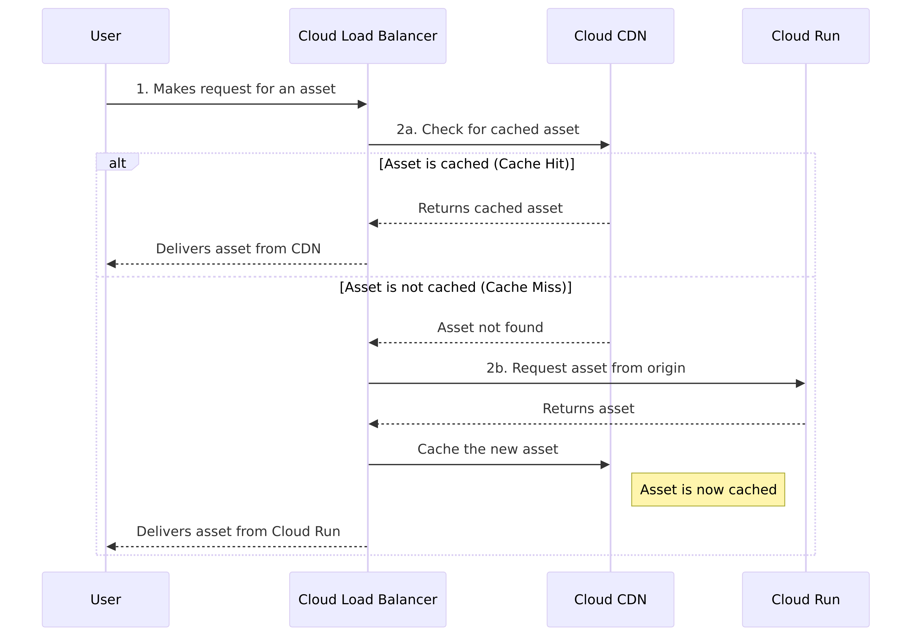 Cloud_Run-->>Cloud_Load_Balancer: Assets retrieved